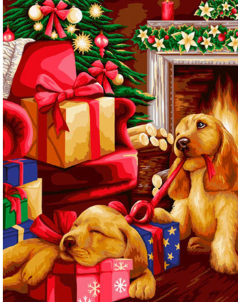 Playing pets christmas evening diamond painting