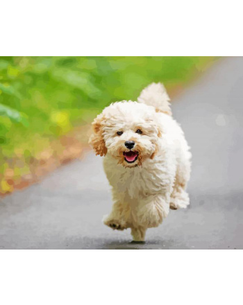 Running maltipoo dog diamond painting