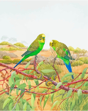 Budgie birds on tree diamond painting