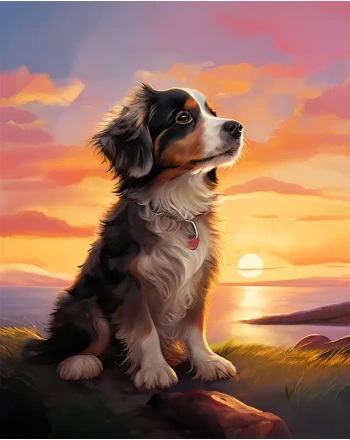 Dog watching sunset diamond painting