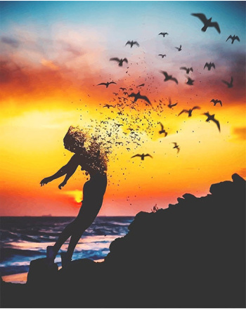 Girl and flying birds diamond painting