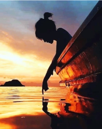 Lonely girl in sunset diamond painting