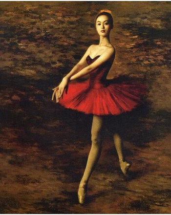 Ballerina wearing red dress diamond painting