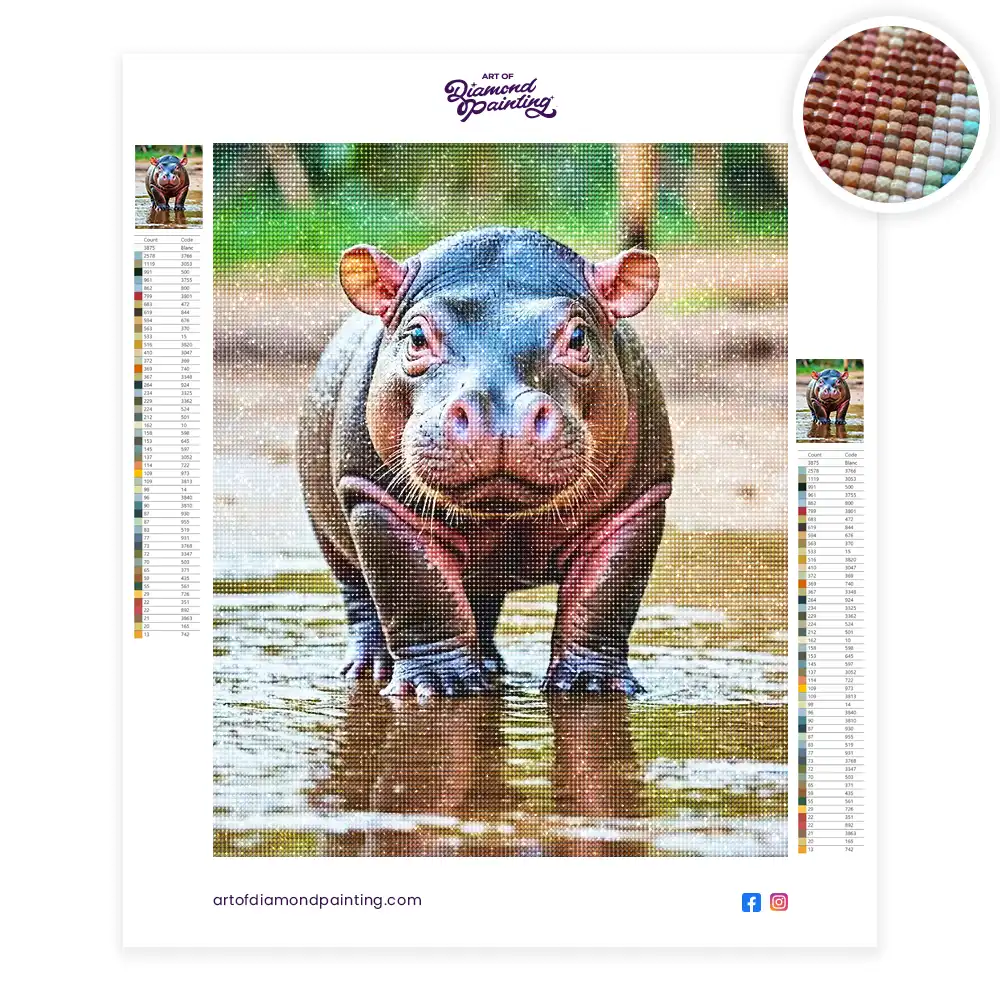 A baby pygmy hippo diamond painting is an awesome way to begin your painting journey. A journey full of colours that sometimes comes with lots of patience, passion, and planning. But, always with love. At the conclusion of each day, it provides a gratifying sensation that enhances your self-assurance as you realize your own accomplishments. So why delay any further? Simply make your purchase and begin today.