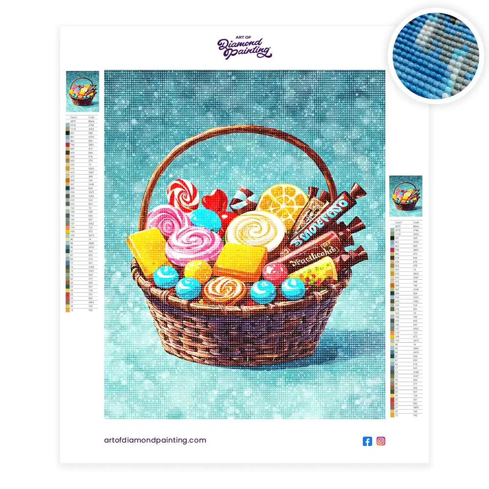 This A basket full on candies kit contains all the necessary materials to create your artwork