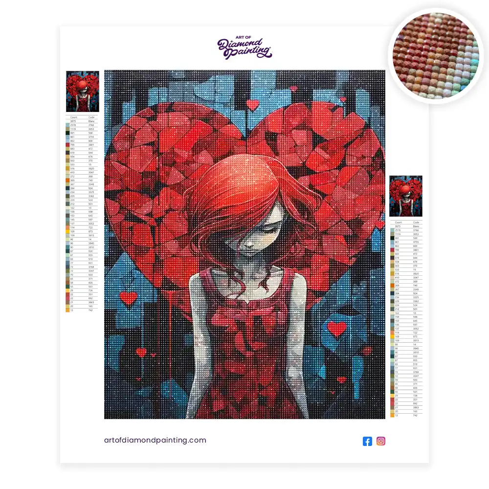 A girl and a broken red heart diamond painting is an awesome way to begin your painting journey. A journey full of colours that sometimes comes with lots of patience, passion, and planning. But, always with love. At the conclusion of each day, it provides a gratifying sensation that enhances your self-assurance as you realize your own accomplishments. So why delay any further? Simply make your purchase and begin today.