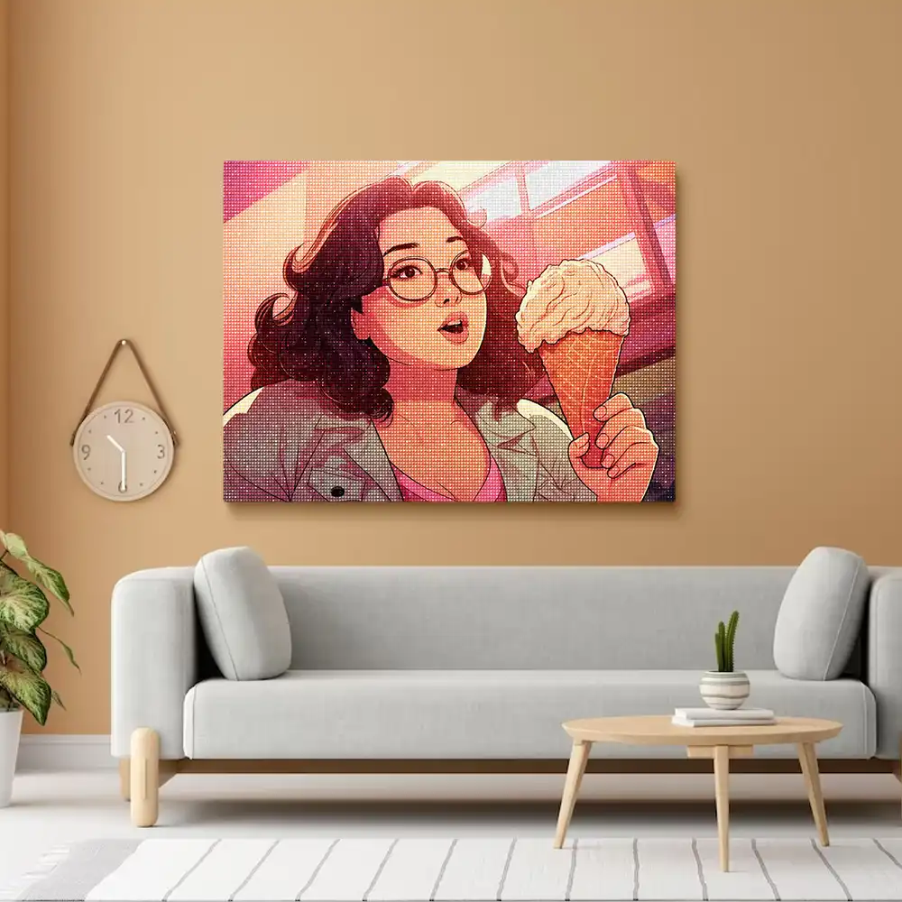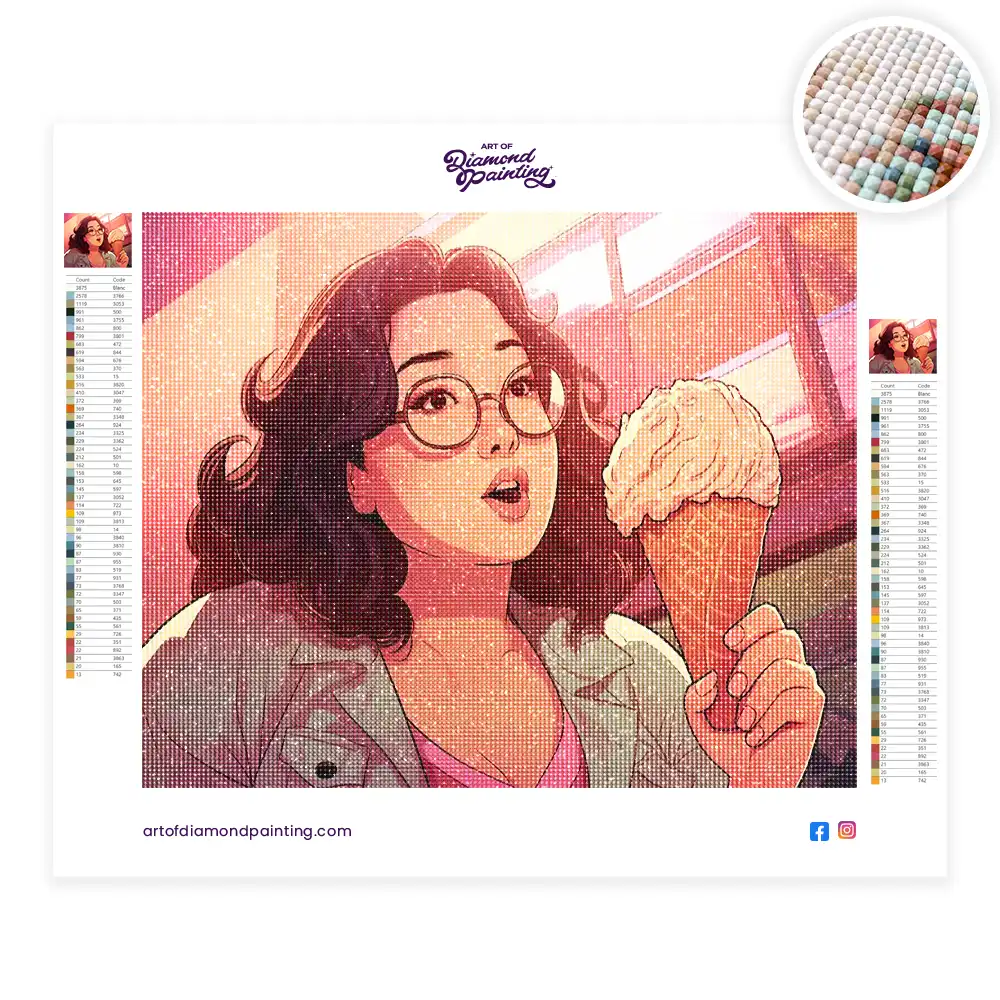 A girl is enjoying her ice cream diamond painting is an awesome way to begin your painting journey. A journey full of colours that sometimes comes with lots of patience, passion, and planning. But, always with love. At the conclusion of each day, it provides a gratifying sensation that enhances your self-assurance as you realize your own accomplishments. So why delay any further? Simply make your purchase and begin today.