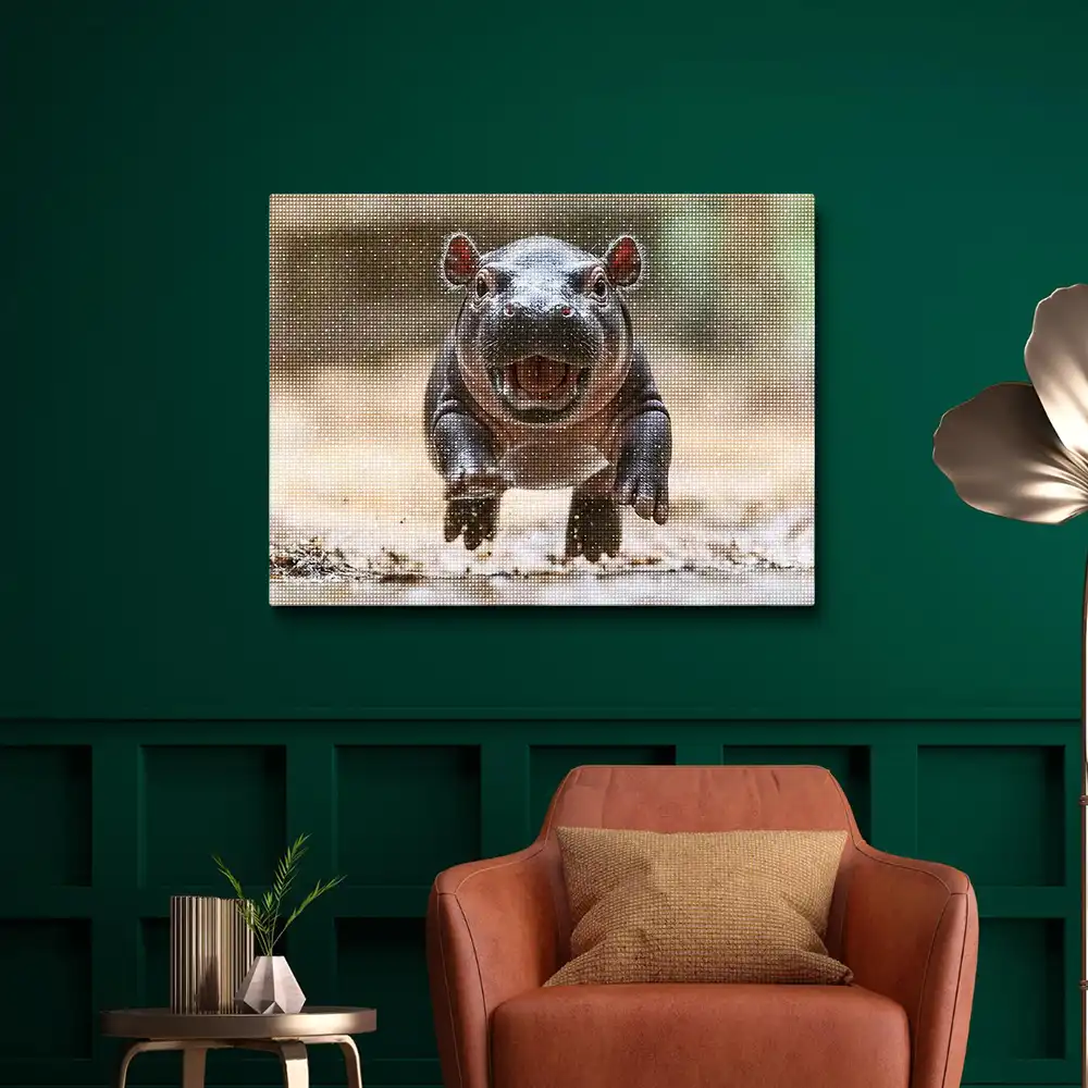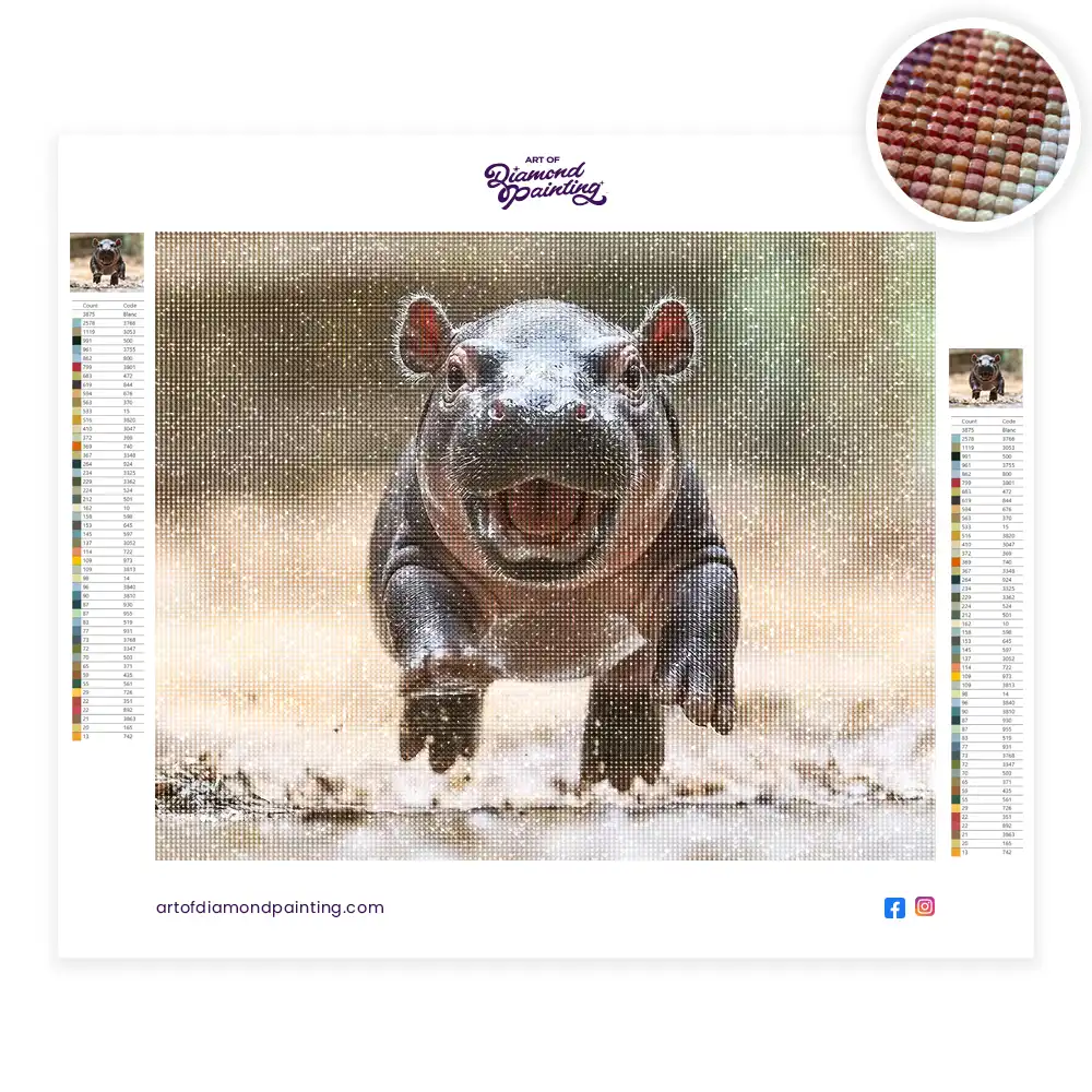 A playful baby pygmy hippo diamond painting is an awesome way to begin your painting journey. A journey full of colours that sometimes comes with lots of patience, passion, and planning. But, always with love. At the conclusion of each day, it provides a gratifying sensation that enhances your self-assurance as you realize your own accomplishments. So why delay any further? Simply make your purchase and begin today.