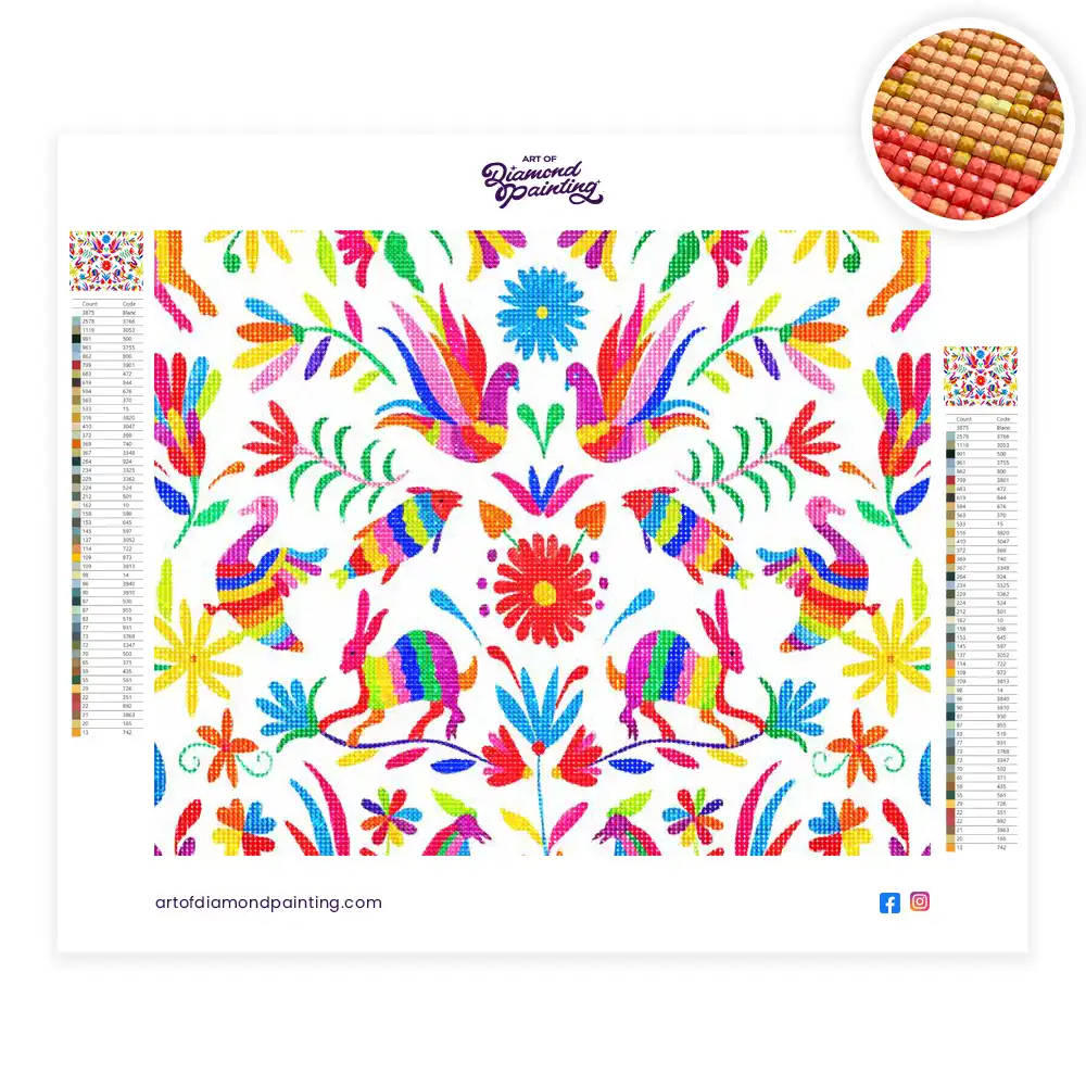 This Aesthetic mexican otomi diamond painting kit contains all the necessary materials to create your artwork