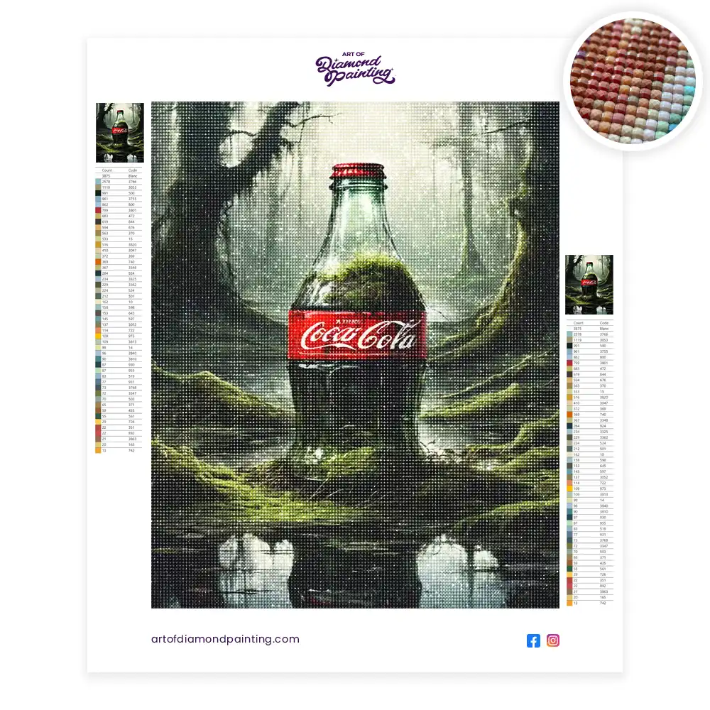 An empty Coca Cola bottle in the swamp diamond painting is an awesome way to begin your painting journey. A journey full of colours that sometimes comes with lots of patience, passion, and planning. But, always with love. At the conclusion of each day, it provides a gratifying sensation that enhances your self-assurance as you realize your own accomplishments. So why delay any further? Simply make your purchase and begin today.