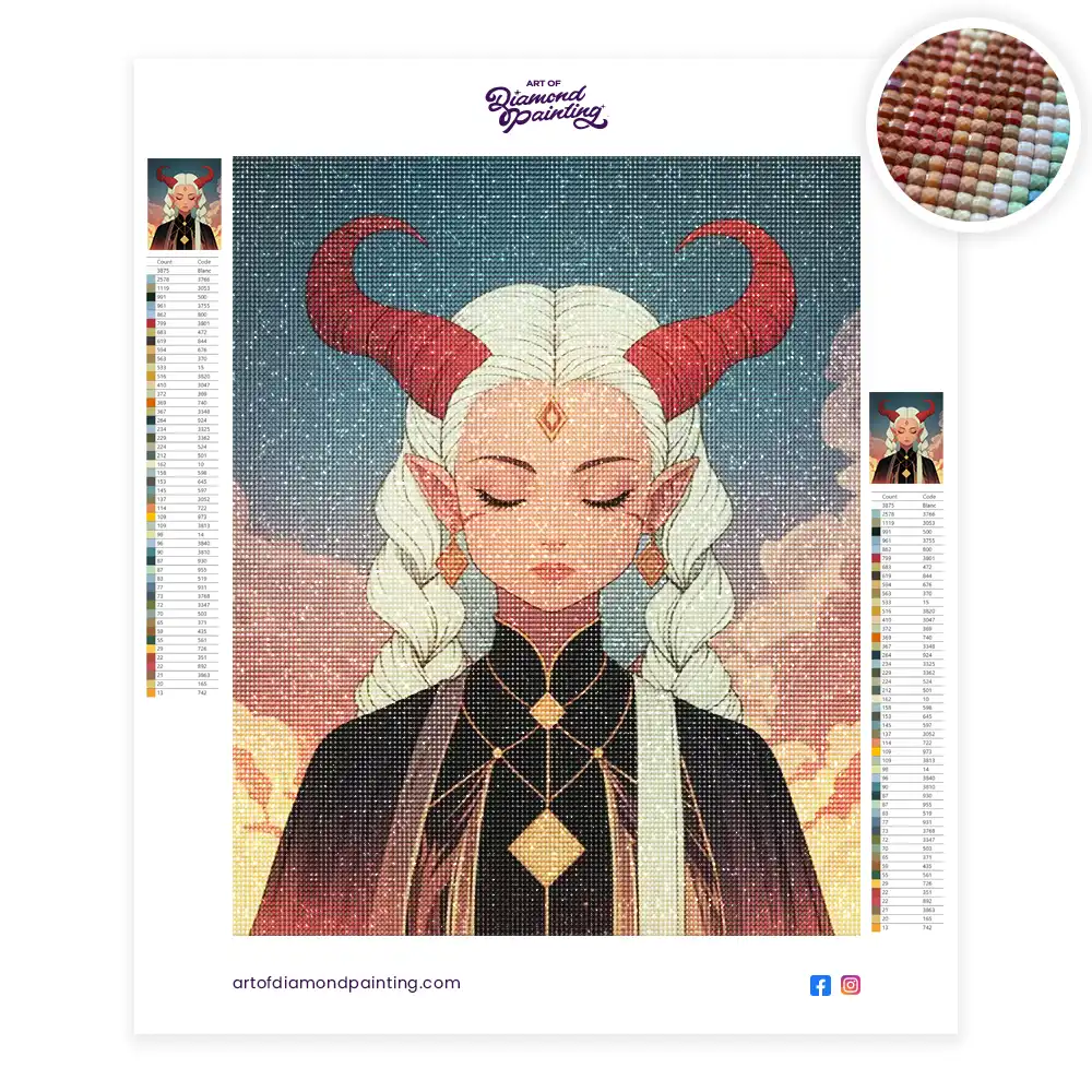 To begin your diamond painting journey all you need is a diamond painting kit. The kit includes colored resins, canvas, diamond applicator, wax for the pen, tray for diamonds and instructions.