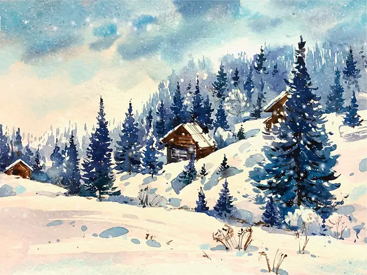 This Beautiful winter landscape in watercolor kit contains all the necessary materials to create your artwork