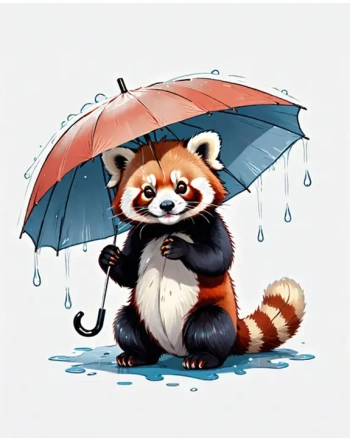 Red panda under an umbrella