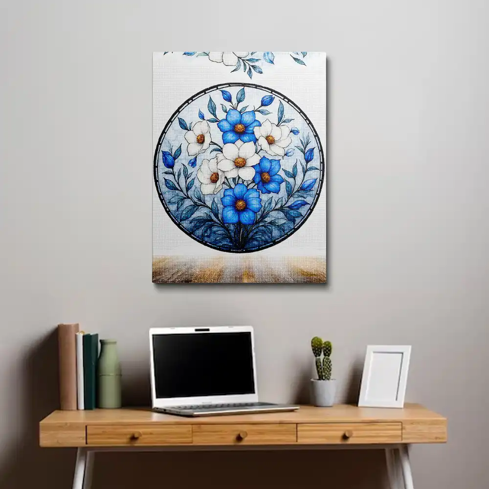 This Blue and white flowers kit contains all the necessary materials to create your artwork