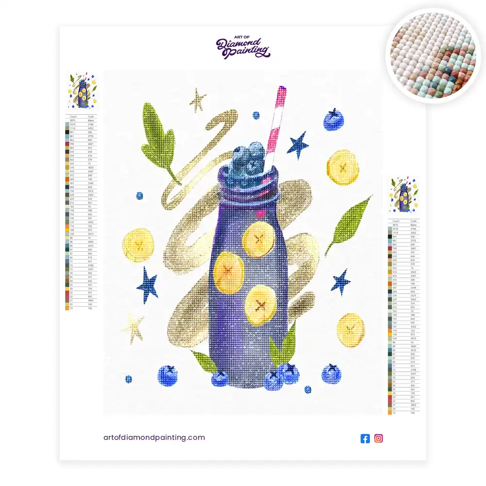 Blueberry smoothie diamond painting is an awesome way to begin your painting journey. A journey full of colours that sometimes comes with lots of patience, passion, and planning. But, always with love. At the conclusion of each day, it provides a gratifying sensation that enhances your self-assurance as you realize your own accomplishments. So why delay any further? Simply make your purchase and begin today.