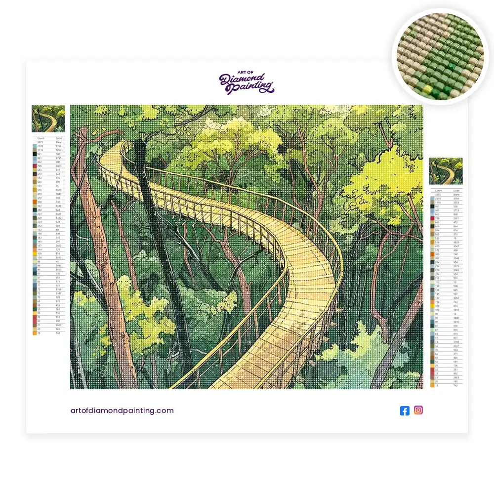 Canopy walkway diamond painting is an awesome way to begin your painting journey. A journey full of colours that sometimes comes with lots of patience, passion, and planning. But, always with love. At the conclusion of each day, it provides a gratifying sensation that enhances your self-assurance as you realize your own accomplishments. So why delay any further? Simply make your purchase and begin today.