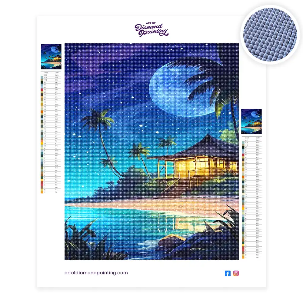 Full drill diamond paintings have diamonds covering the entire canvas whereas partial diamond paintings cover only a portion of the canvas leaving some areas blank.