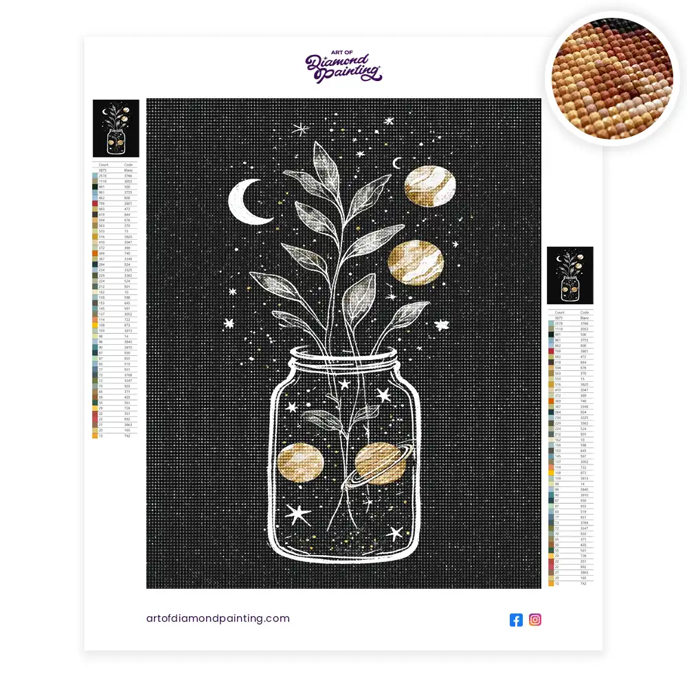 Celestial dreams in a jar diamond painting is an awesome way to begin your painting journey. A journey full of colours that sometimes comes with lots of patience, passion, and planning. But, always with love. At the conclusion of each day, it provides a gratifying sensation that enhances your self-assurance as you realize your own accomplishments. So why delay any further? Simply make your purchase and begin today.