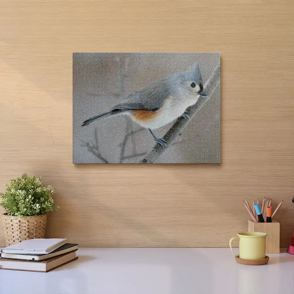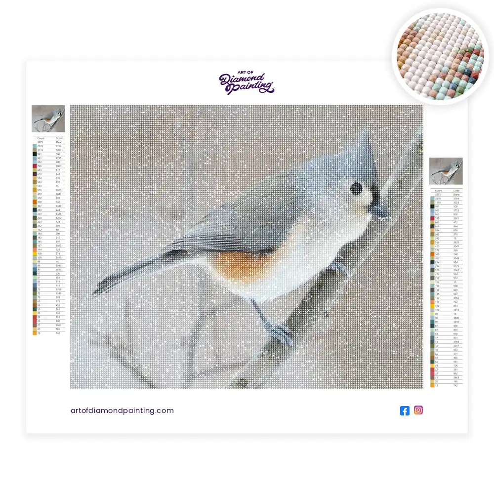 This Christmas Titmouse diamond painting kit contains all the necessary materials to create your artwork