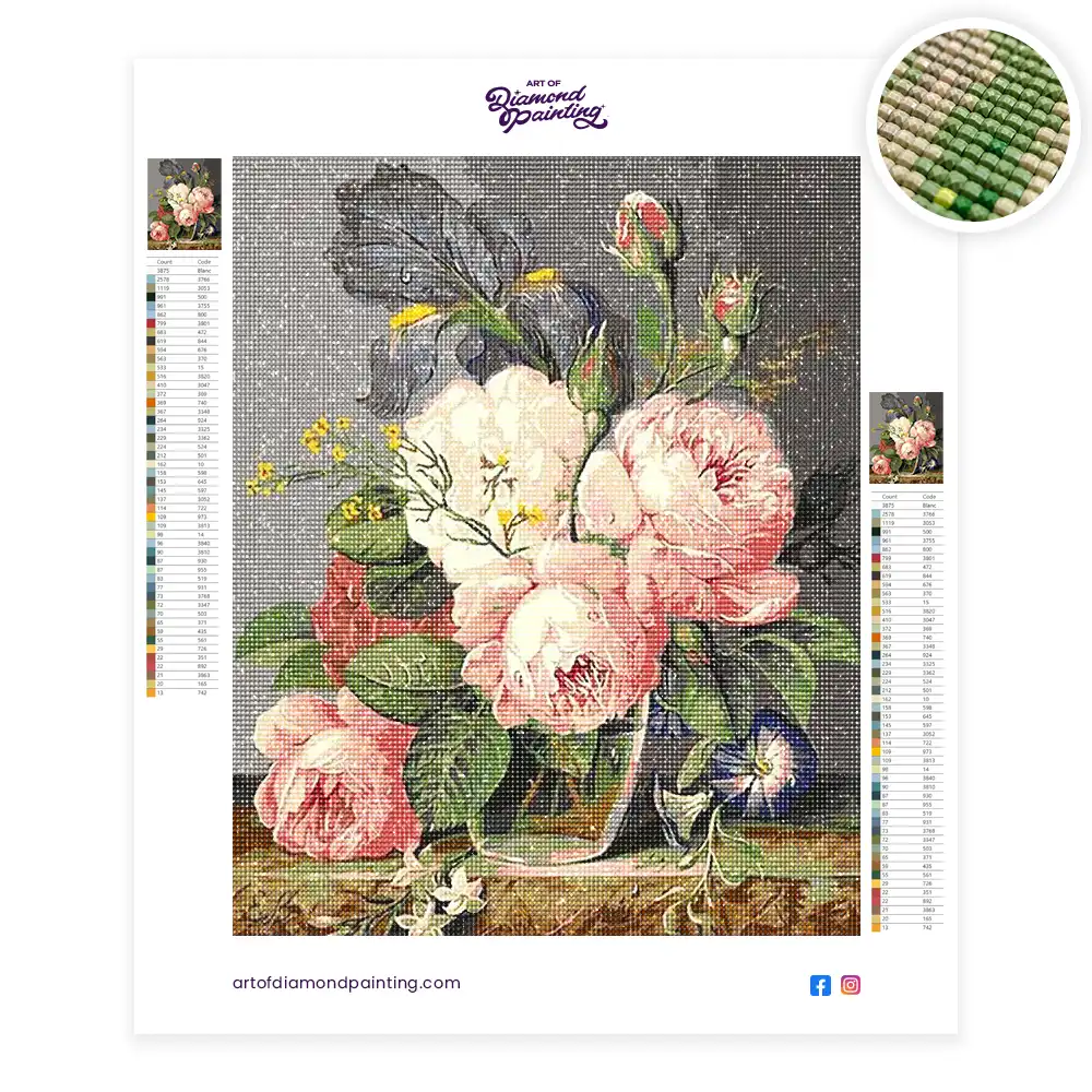 This Classical floral diy diamond painting kit contains all the necessary materials to create your artwork