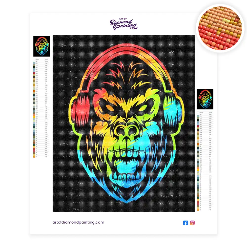 This Colorful angry gorilla diamond painting kit contains all the necessary materials to create your artwork