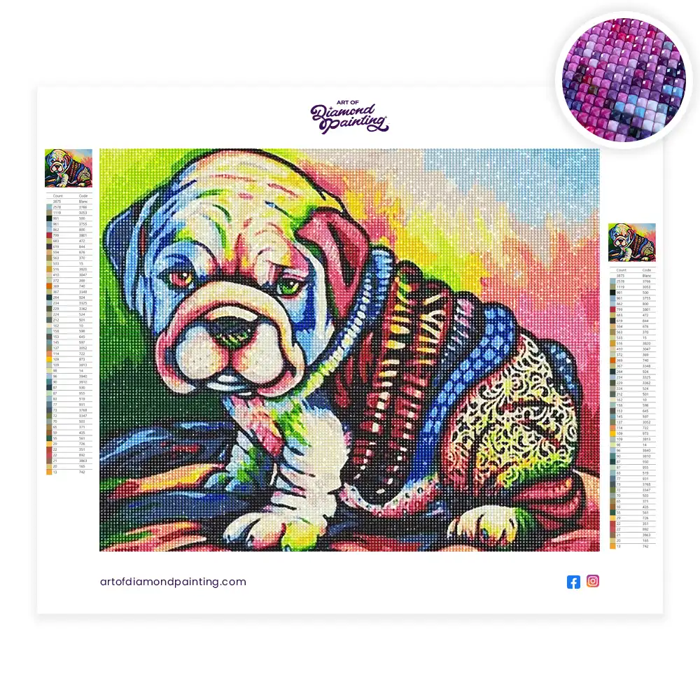 This Colorful Bull Dog diamond painting kit contains all the necessary materials to create your artwork