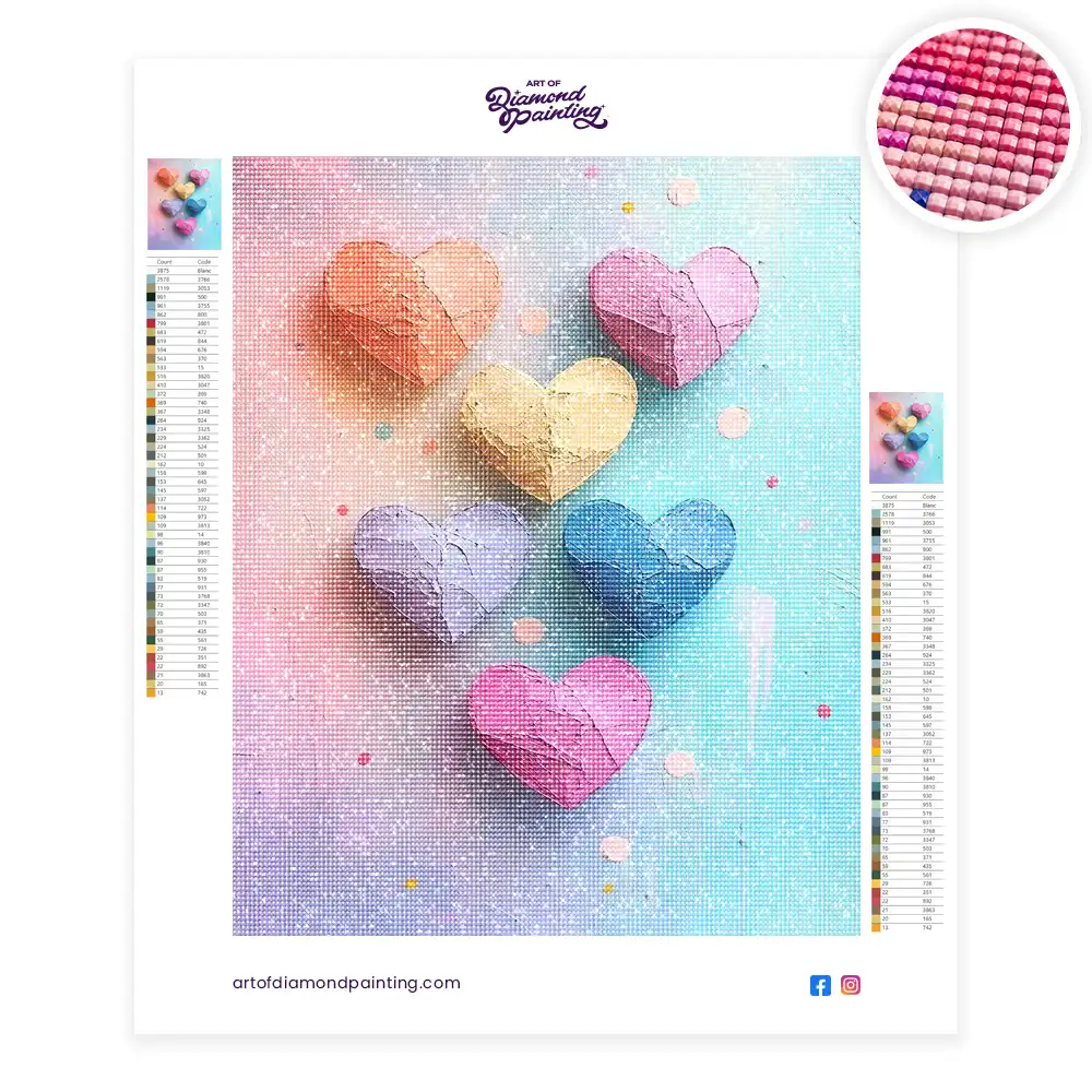 Colorful hearts diamond painting is an awesome way to begin your painting journey. A journey full of colours that sometimes comes with lots of patience, passion, and planning. But, always with love. At the conclusion of each day, it provides a gratifying sensation that enhances your self-assurance as you realize your own accomplishments. So why delay any further? Simply make your purchase and begin today.