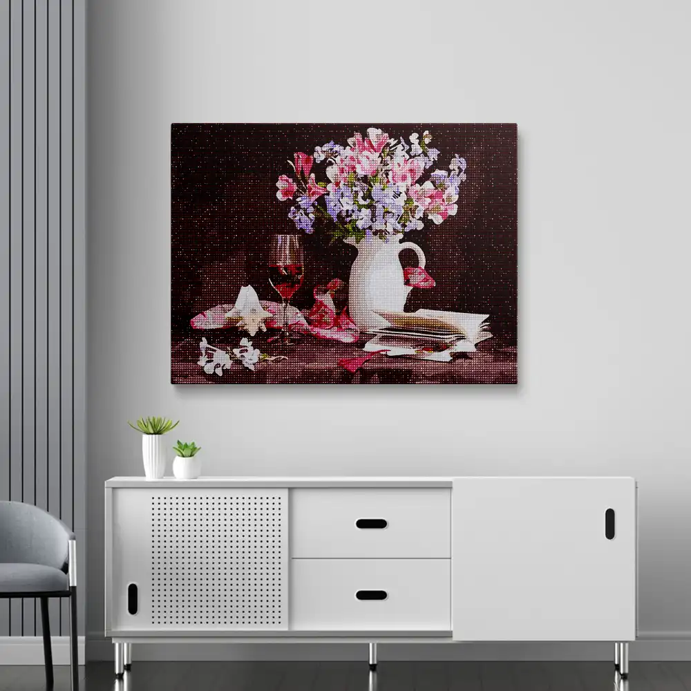 Colorful Lilac Flowers with Vase diamond painting diamond painting is an awesome way to begin your painting journey. A journey full of colours that sometimes comes with lots of patience, passion, and planning. But, always with love. At the conclusion of each day, it provides a gratifying sensation that enhances your self-assurance as you realize your own accomplishments. So why delay any further? Simply make your purchase and begin today.