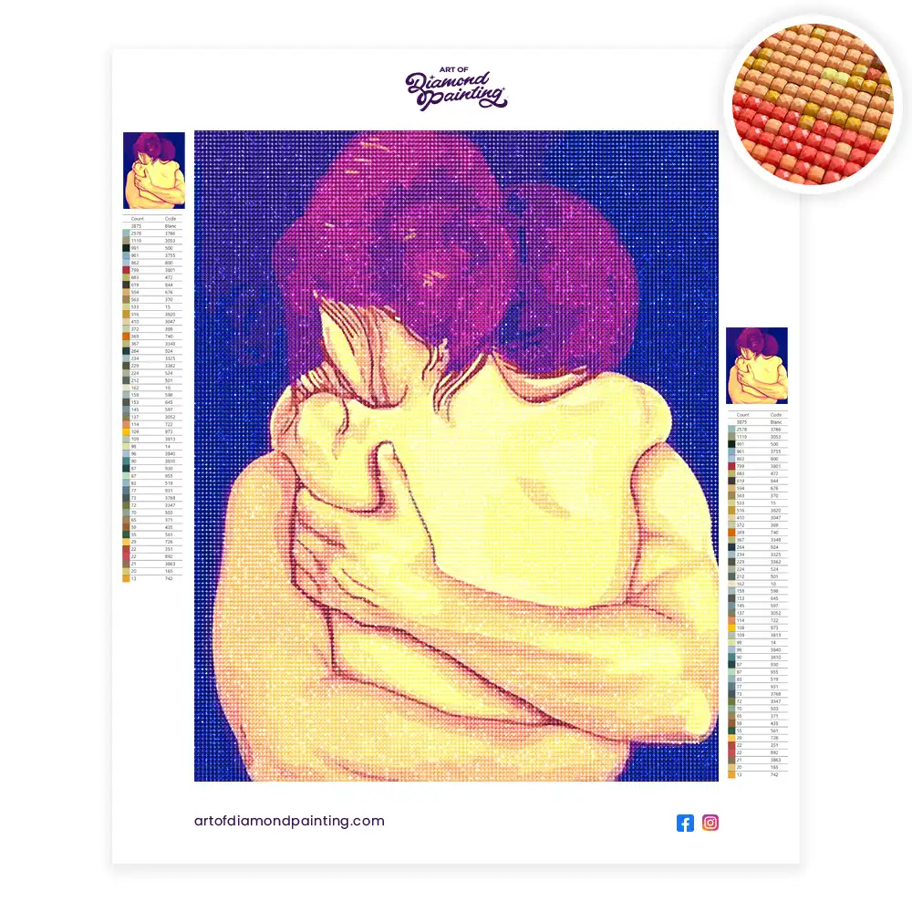 Couple hugs love diamond painting diamond painting is an awesome way to begin your painting journey. A journey full of colours that sometimes comes with lots of patience, passion, and planning. But, always with love. At the conclusion of each day, it provides a gratifying sensation that enhances your self-assurance as you realize your own accomplishments. So why delay any further? Simply make your purchase and begin today.