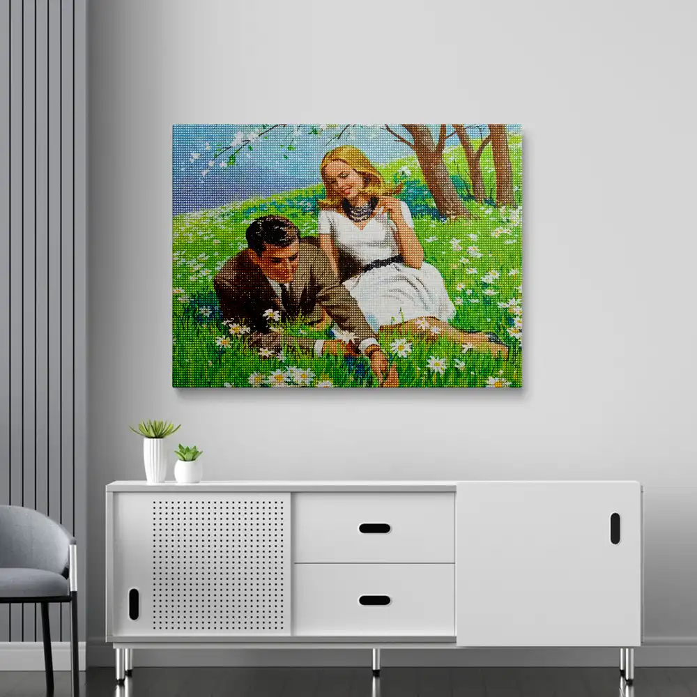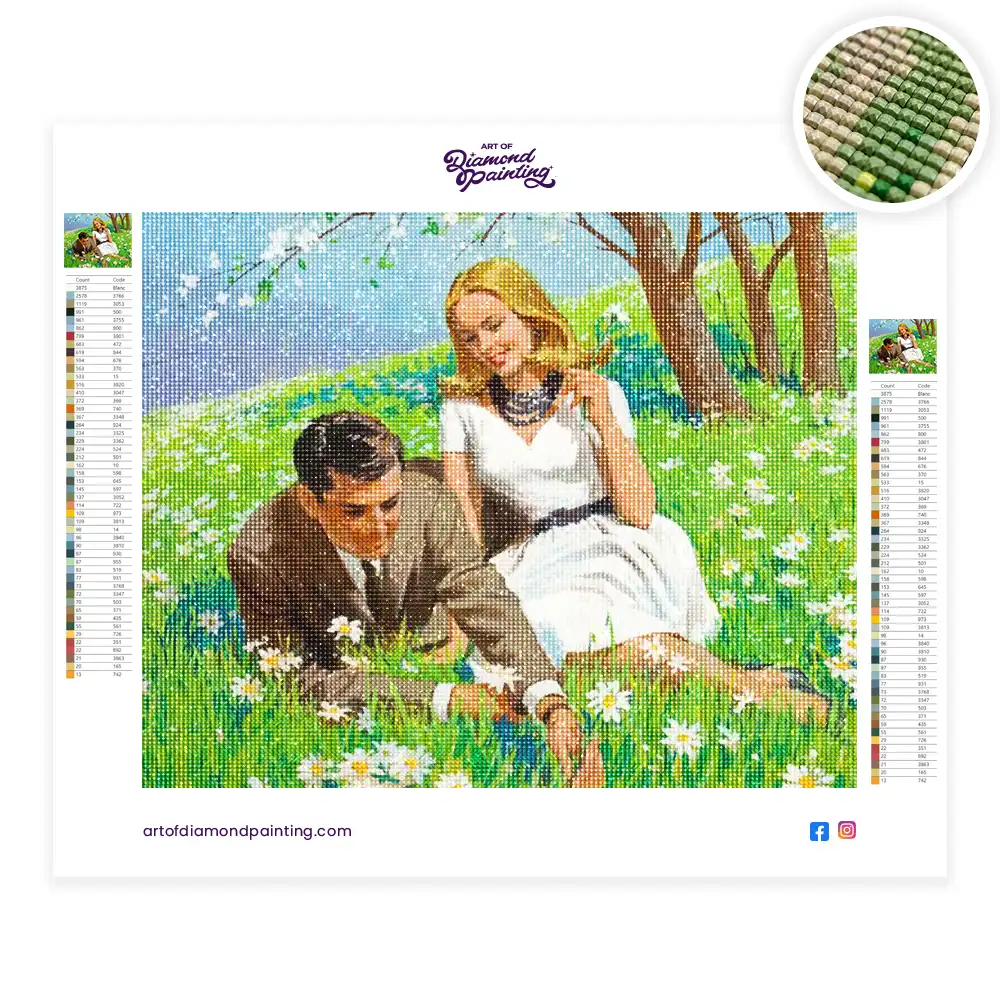 This Couple in nature diamond painting kit contains all the necessary materials to create your artwork
