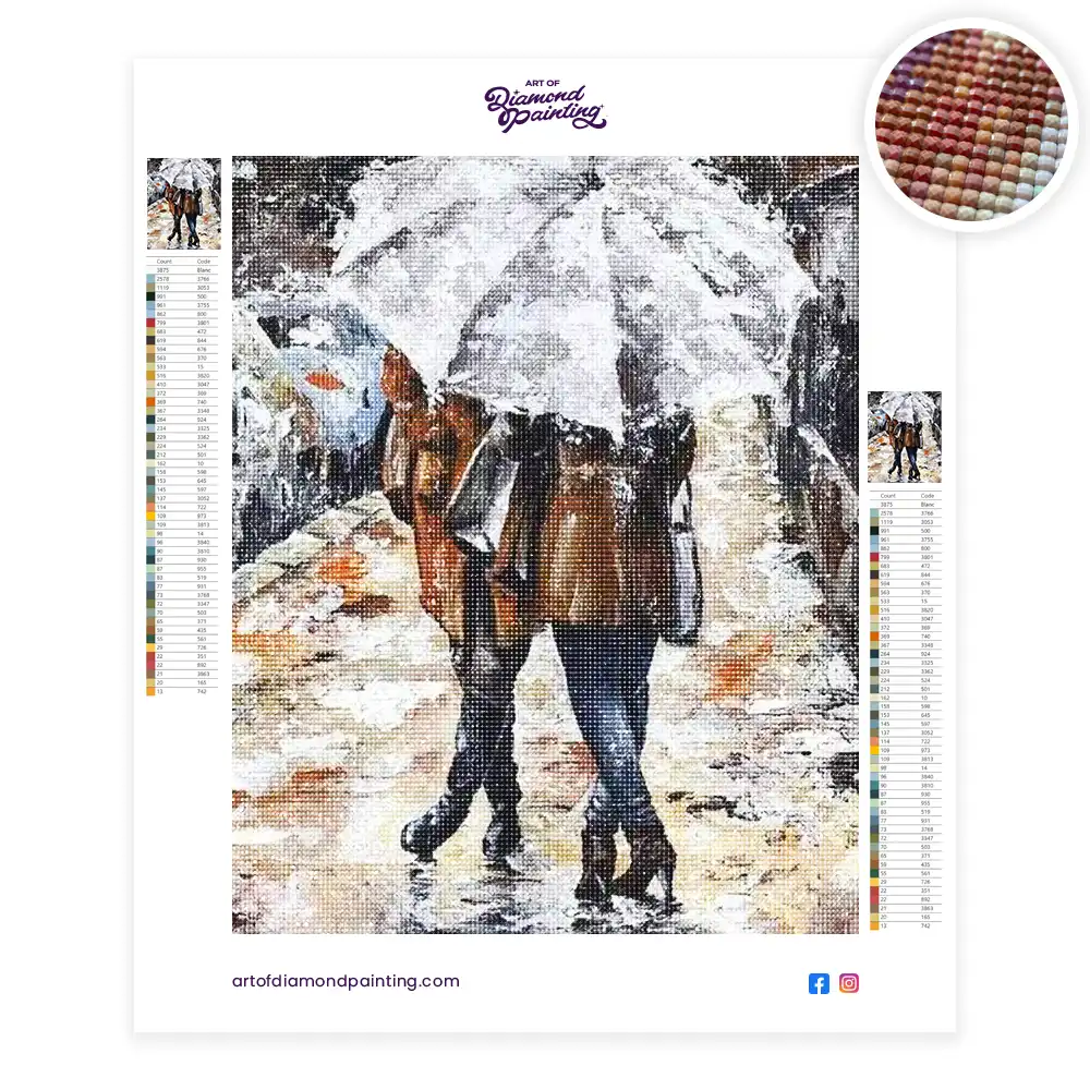 Couple under an umbrella diamond painting diamond painting is an awesome way to begin your painting journey. A journey full of colours that sometimes comes with lots of patience, passion, and planning. But, always with love. At the conclusion of each day, it provides a gratifying sensation that enhances your self-assurance as you realize your own accomplishments. So why delay any further? Simply make your purchase and begin today.
