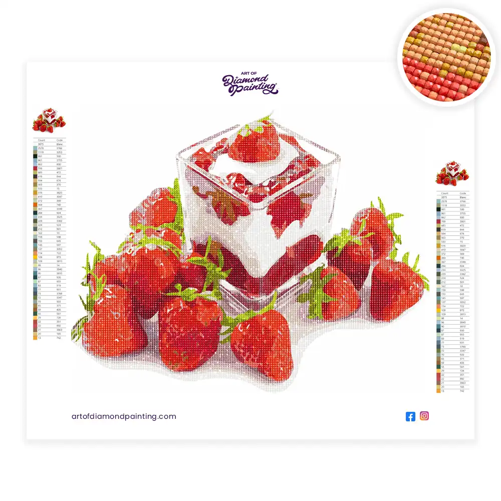 Dessert with Strawberries diamond painting diamond painting is an awesome way to begin your painting journey. A journey full of colours that sometimes comes with lots of patience, passion, and planning. But, always with love. At the conclusion of each day, it provides a gratifying sensation that enhances your self-assurance as you realize your own accomplishments. So why delay any further? Simply make your purchase and begin today.