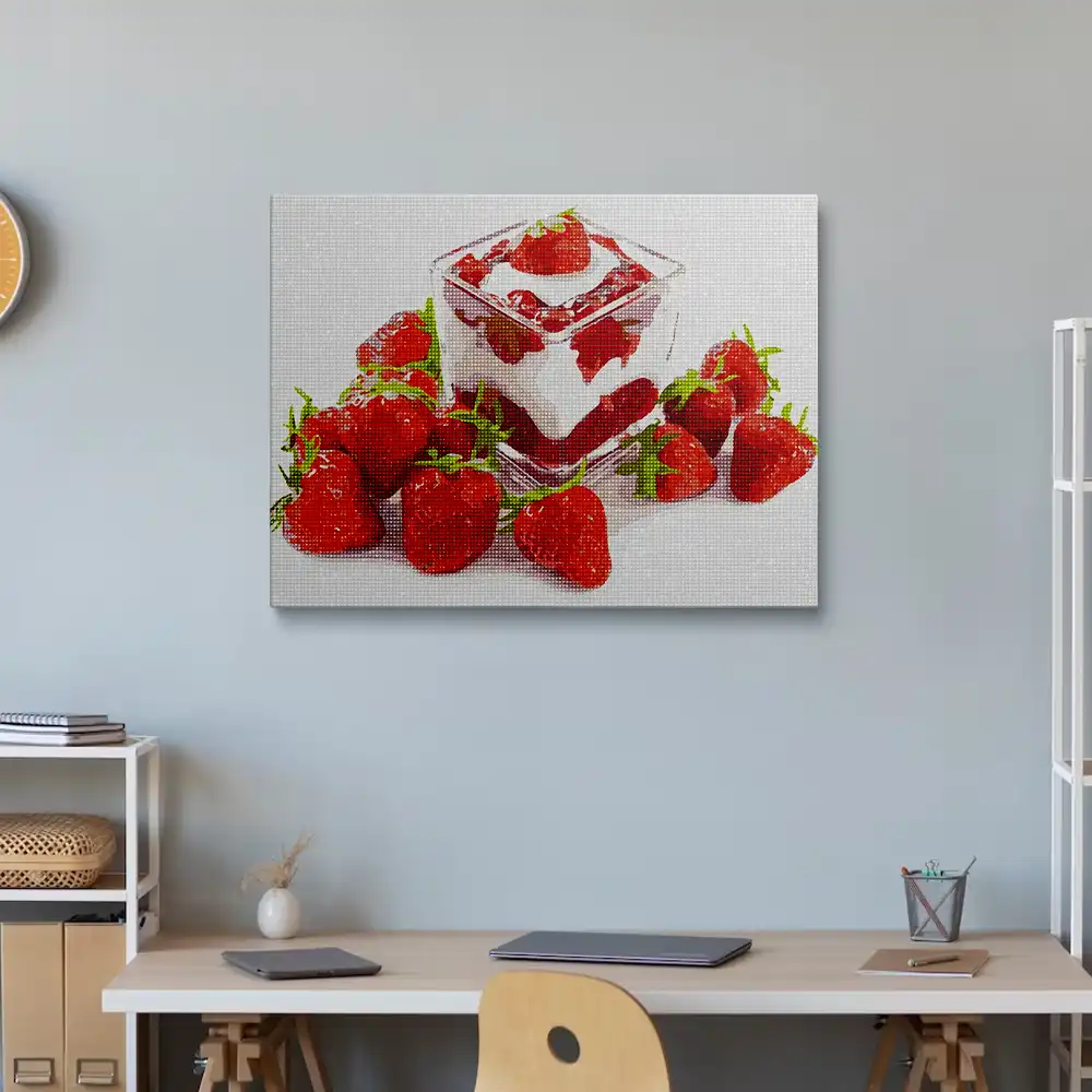 This Dessert with Strawberries diamond painting kit contains all the necessary materials to create your artwork