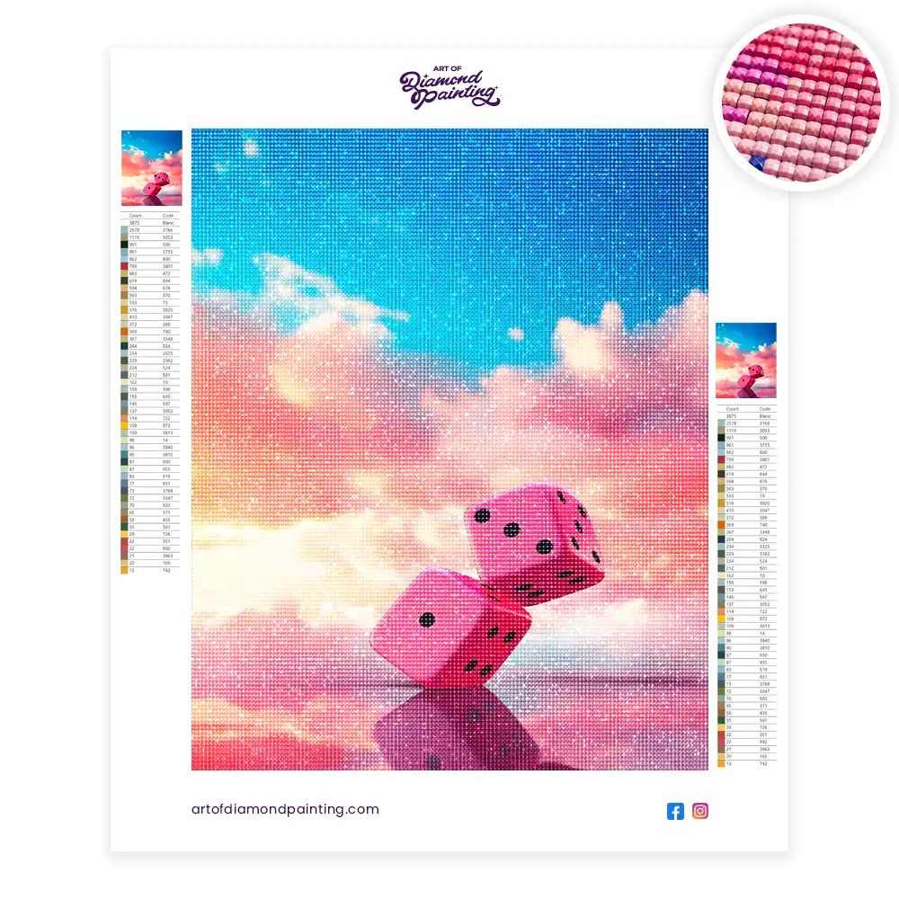 Dice with clouds diamond painting is an awesome way to begin your painting journey. A journey full of colours that sometimes comes with lots of patience, passion, and planning. But, always with love. At the conclusion of each day, it provides a gratifying sensation that enhances your self-assurance as you realize your own accomplishments. So why delay any further? Simply make your purchase and begin today.