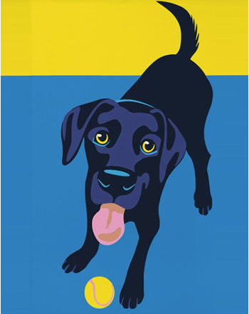 Dog plays with ball diamond painting