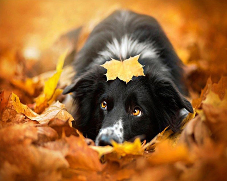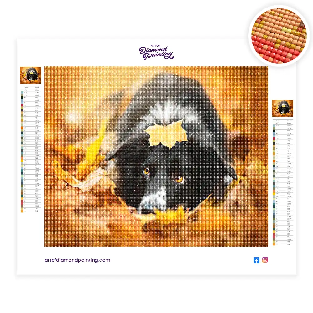 This Dog in Autumn diamond painting kit contains all the necessary materials to create your artwork