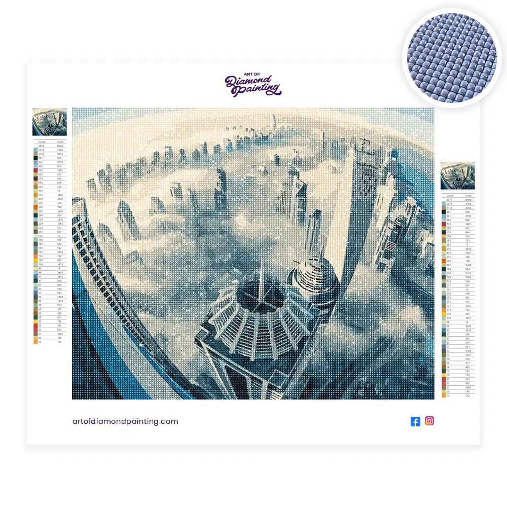 This Dubai above the clouds diamond painting kit contains all the necessary materials to create your artwork