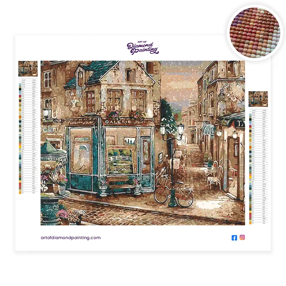 Europe Coffee Shop Artwork diamond painting diamond painting is an awesome way to begin your painting journey. A journey full of colours that sometimes comes with lots of patience, passion, and planning. But, always with love. At the conclusion of each day, it provides a gratifying sensation that enhances your self-assurance as you realize your own accomplishments. So why delay any further? Simply make your purchase and begin today.