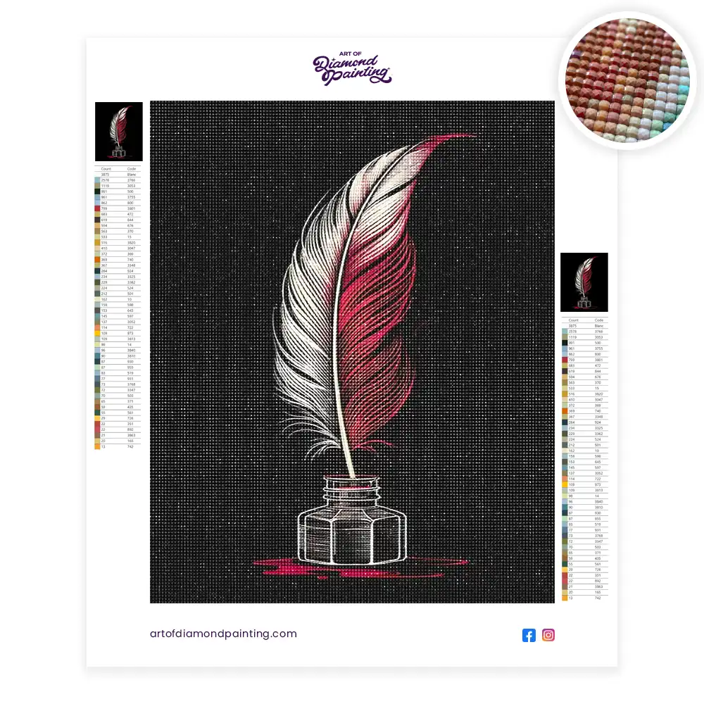 Feather in ink bottle diamond painting is an awesome way to begin your painting journey. A journey full of colours that sometimes comes with lots of patience, passion, and planning. But, always with love. At the conclusion of each day, it provides a gratifying sensation that enhances your self-assurance as you realize your own accomplishments. So why delay any further? Simply make your purchase and begin today.