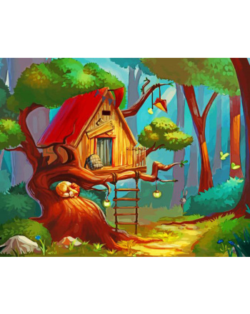 Forest tree house art diamond painting