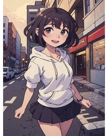 Anime girl in a white hoodie