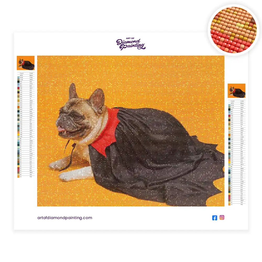 French bulldog in vampire cape diamond painting diamond painting is an awesome way to begin your painting journey. A journey full of colours that sometimes comes with lots of patience, passion, and planning. But, always with love. At the conclusion of each day, it provides a gratifying sensation that enhances your self-assurance as you realize your own accomplishments. So why delay any further? Simply make your purchase and begin today.