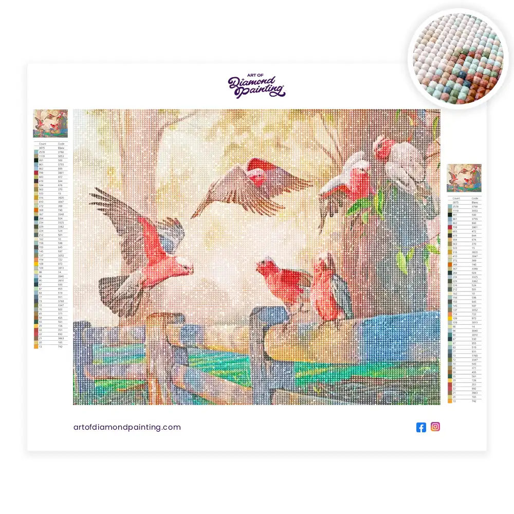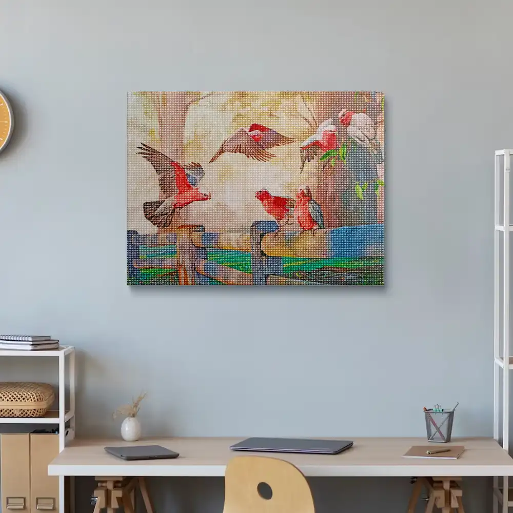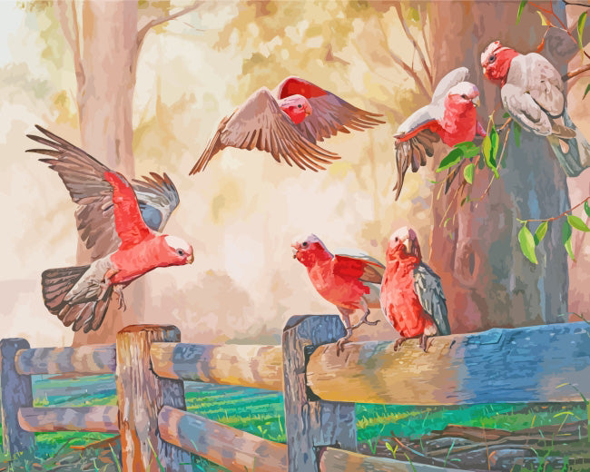 Galah birds gathering diamond painting diamond painting is an awesome way to begin your painting journey. A journey full of colours that sometimes comes with lots of patience, passion, and planning. But, always with love. At the conclusion of each day, it provides a gratifying sensation that enhances your self-assurance as you realize your own accomplishments. So why delay any further? Simply make your purchase and begin today.