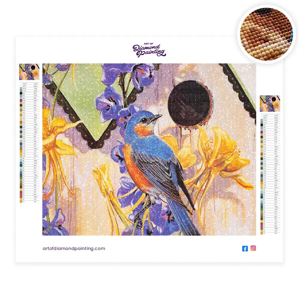 Garden eastern bluebird diamond painting diamond painting is an awesome way to begin your painting journey. A journey full of colours that sometimes comes with lots of patience, passion, and planning. But, always with love. At the conclusion of each day, it provides a gratifying sensation that enhances your self-assurance as you realize your own accomplishments. So why delay any further? Simply make your purchase and begin today.
