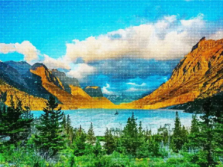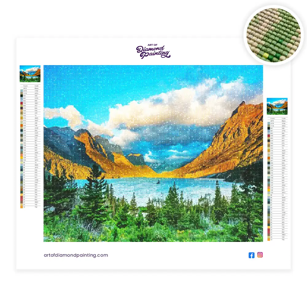 This Glacier national park landscape diamond painting kit contains all the necessary materials to create your artwork