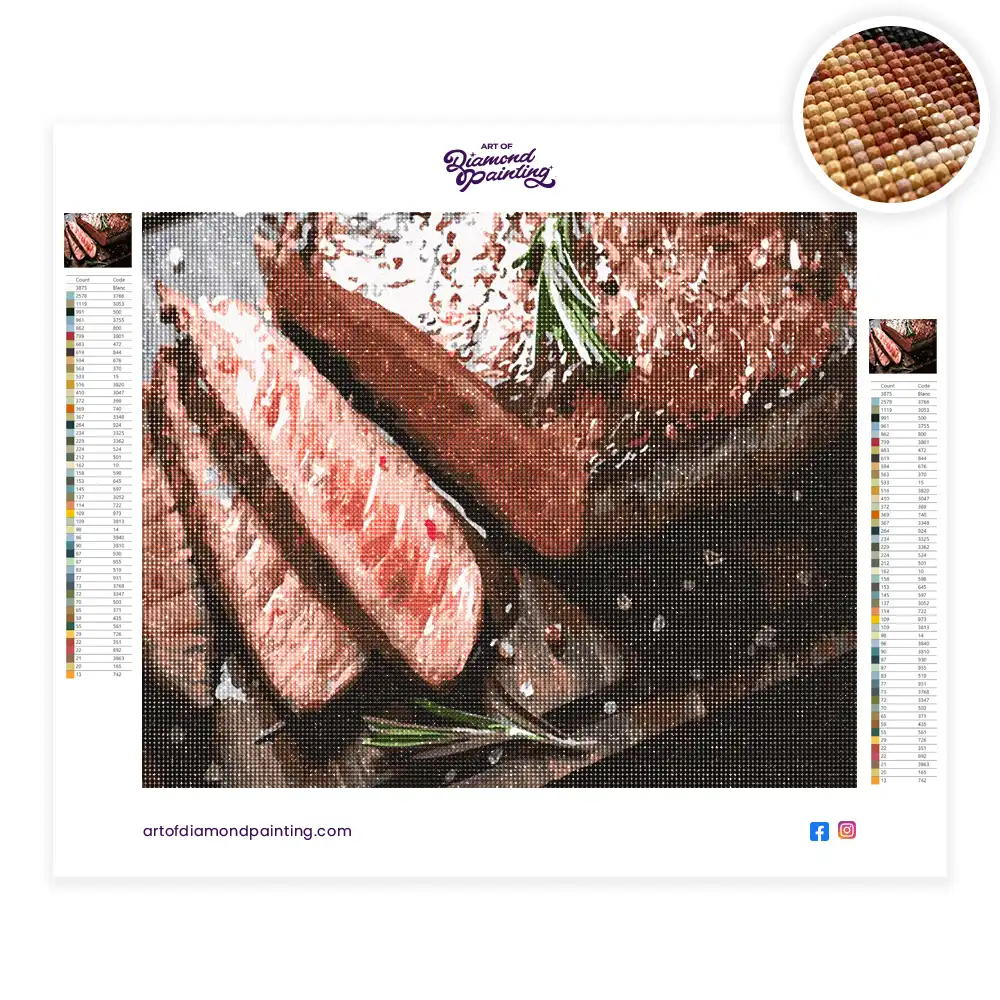 Grilled Beef Steak diamond painting diamond painting is an awesome way to begin your painting journey. A journey full of colours that sometimes comes with lots of patience, passion, and planning. But, always with love. At the conclusion of each day, it provides a gratifying sensation that enhances your self-assurance as you realize your own accomplishments. So why delay any further? Simply make your purchase and begin today.