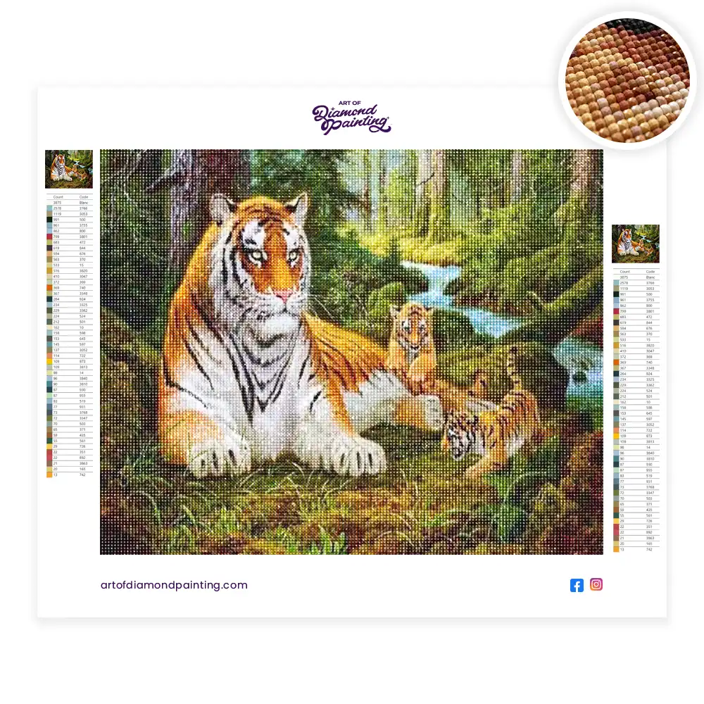 This Group of Tiger Family diamond painting kit contains all the necessary materials to create your artwork