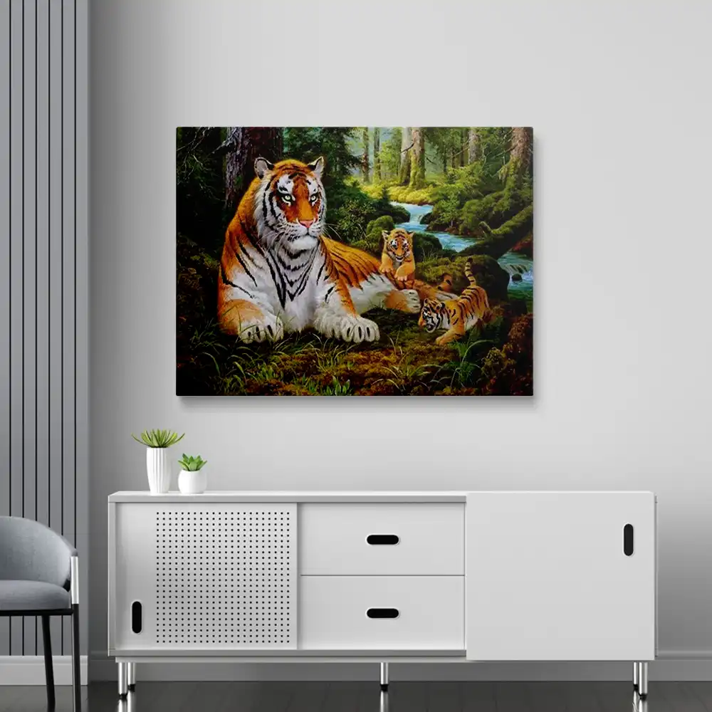 Group of Tiger Family diamond painting diamond painting is an awesome way to begin your painting journey. A journey full of colours that sometimes comes with lots of patience, passion, and planning. But, always with love. At the conclusion of each day, it provides a gratifying sensation that enhances your self-assurance as you realize your own accomplishments. So why delay any further? Simply make your purchase and begin today.