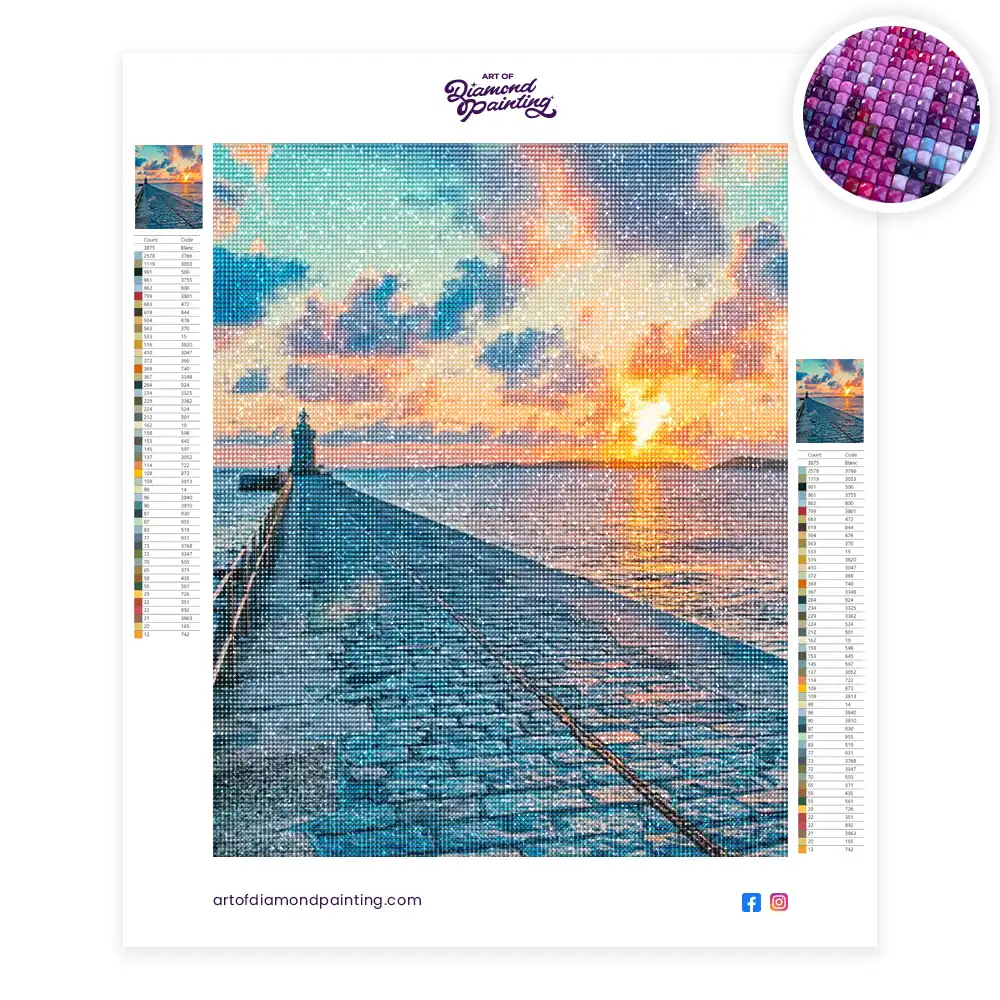 This Guernsey sunset diamond painting kit contains all the necessary materials to create your artwork