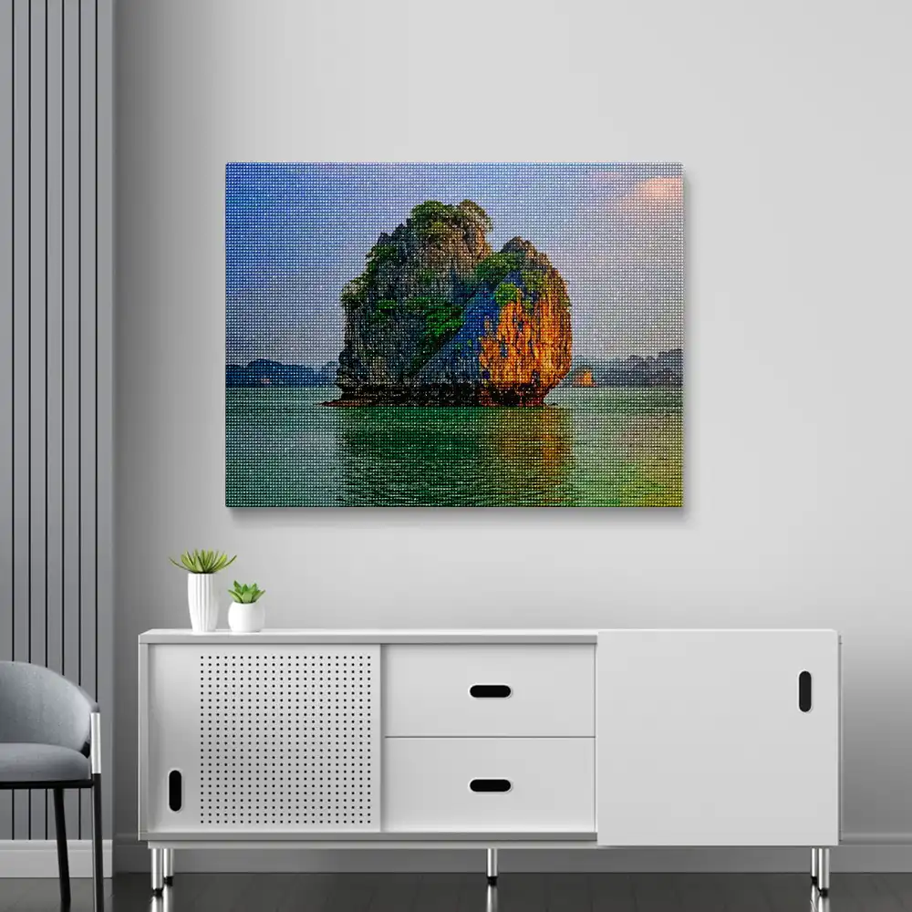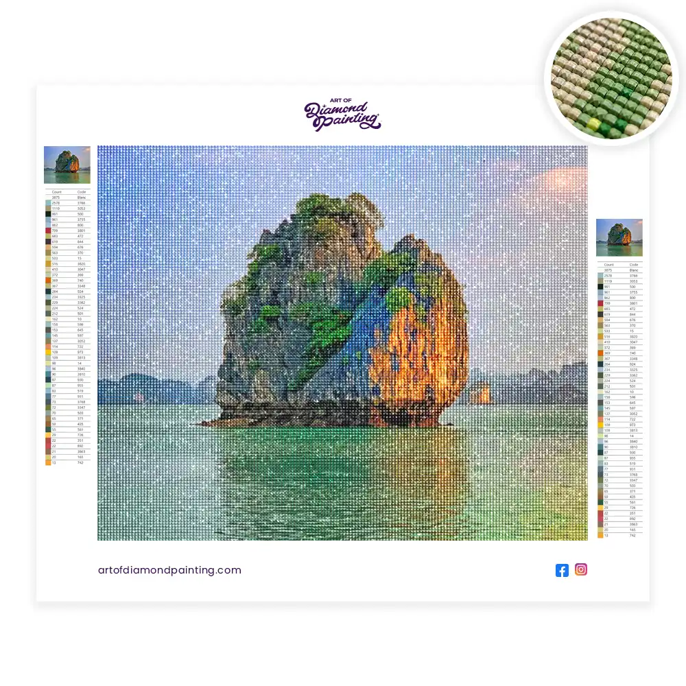 Halong bay vietnam diamond painting diamond painting is an awesome way to begin your painting journey. A journey full of colours that sometimes comes with lots of patience, passion, and planning. But, always with love. At the conclusion of each day, it provides a gratifying sensation that enhances your self-assurance as you realize your own accomplishments. So why delay any further? Simply make your purchase and begin today.